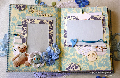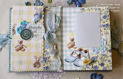 И снова с вами я, Стальмакова Ольга. Сегодня я вам покажу свой новенький мини-альбом для мальчика из интересной коллекции It's a Boy. Бумага меня порадовала - оказалась плотной, а цвета спокойные и для малыша подходящие..., есть лист с тегами и словами, они придают альбому законченный вид.