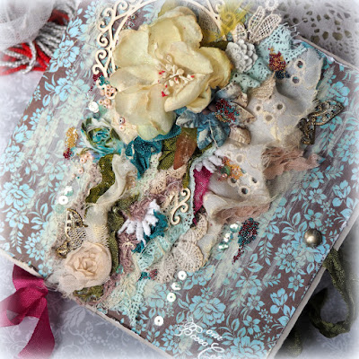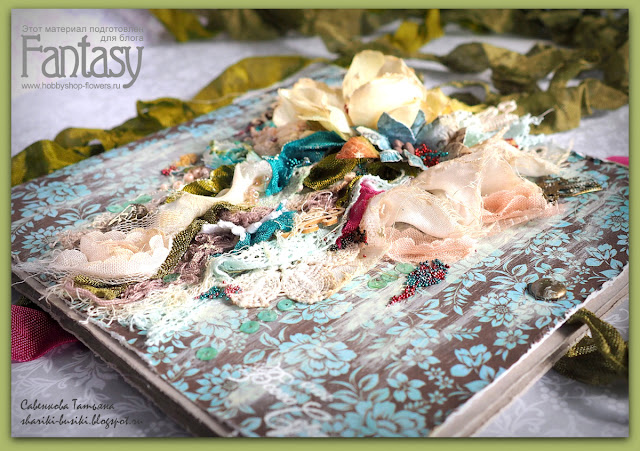 7. Добавила и цветы. Покрутив и так и этак бумажные розы, я поняла, что для бохо нужны тканевые цветы Petaloo! Я вспомнила о цветочке, предоставленном магазином "Fantasy", но долгое время находившемся "в планах". Я никак не могла подобрать ему подходящее окружение.
