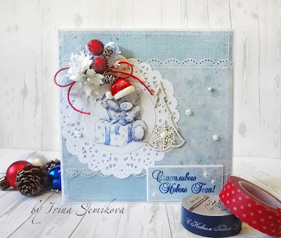В основе всего - бумага и... салфетка, сделанная ножом от CheeryLynn. Многоуровневая картинка Тедди, ягодки, шишки, чипборд и забеленный цветок пуансетии) Классика!