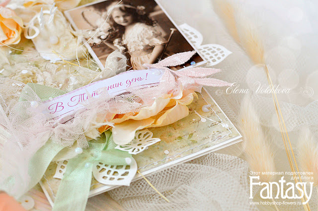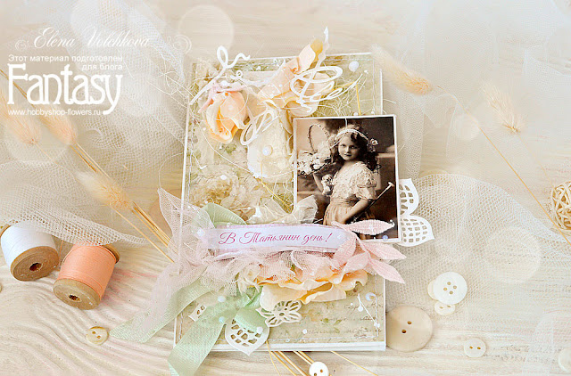 Привет, друзья! С вами сегодня Лена Волчкова, и я покажу вам нежную и романтичную открытку, которую я создавала для поздравления одной чудесной женщины по имени Татьяна.