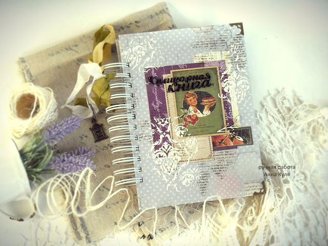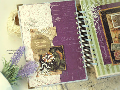 В этот раз кулинарка родилась благодаря набору польской бумаги: бежево-зеленые листы пошли на мужской мини альбом "Special", а фиолетовые были отложены в сторону. В итоге в кулинарную книгу пошла бумага из 6 совершенно разных коллекций!