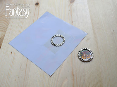 Через сутки эпоксидная смола полностью отвердеет. Тот элемент, который я клеила на двусторонний скотч, осторожно сняла с бумаги. Спинка может быть не очень гладкая, нужно взять ватный диск и любое средство с растворителем, подойдет любая смывка для лака. Диском аккуратно снимите излишки, и элемент станет прозрачным.
