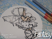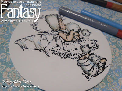 Раскрашивать начинаю с участков кожи... Самым светлым тоном раскрасила открытые участки тела и личика феечки. Затем, более тёмным прошлась по контурам, кстати, без особого "усердия", т.к. "марафет"буду наводить с помощью растушевки.