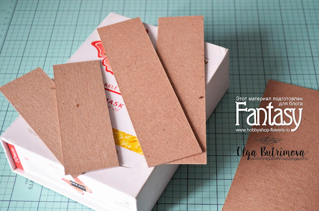 Итак, сначала я готовлю из переплетного картона заготовки для боковых сторон шкатулочки и для крышки - внешней и внутренней стороны.