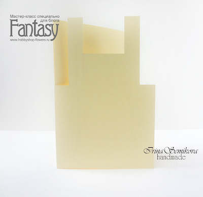 Берем нашу открытку-заготовку и по широкой части фартука