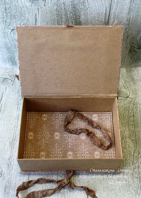 Сама коробочка сделана из пивного картона, но обтянута крафт-бумагой, крышка и низ коробочки тканевые...