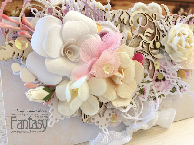В работе использовала только пришедшую мне с почты и очень вдохновляющую коллекцию бумаги от Bee Shabdy "Happiness", свои любимые ножи от нашего магазина Fantasy - салфетку "Славянский базар", "жемчужные нити", "россинки", свадебный завиток "Нежная зелень". Не обошлось, так же, без любимых цветов и ажурного чипборда от "Скрапля".