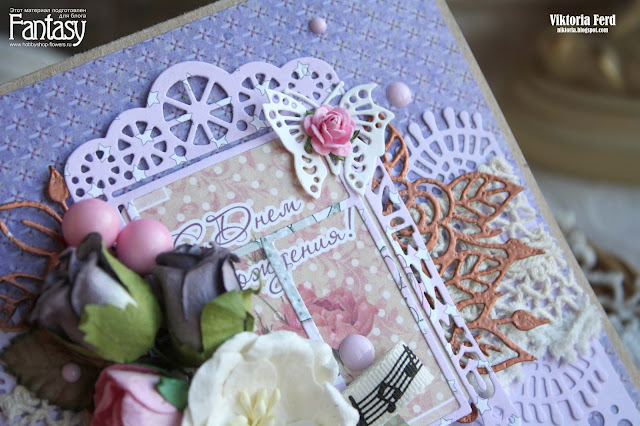 При создании работы использовала ножи: бордюр "Сердечные узоры", "Окно", бабочка "Баттерфляй", Большой букет роз (покрыла эмбоссингом).