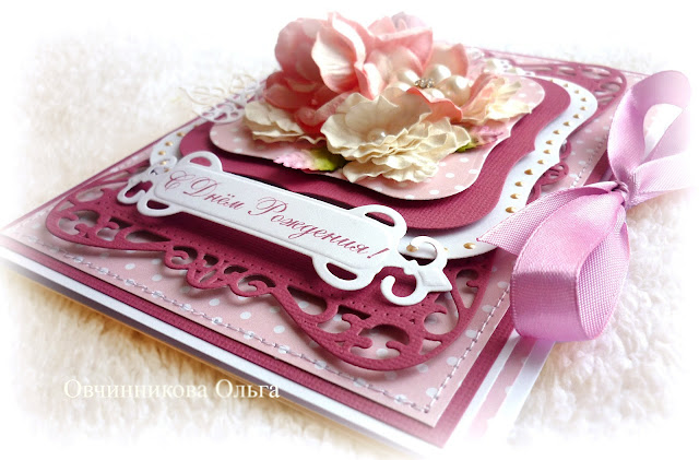 Хочу показать вам открыточку, сделанную в непривычной для меня цветовой гамме. Очень люблю нежные и светлые тона, но в этот раз пришлось поработать с более насыщенным цветом:) Повод чудесный - День рождения для дамы в солидном возрасте.