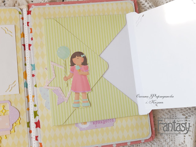 Пятая страница тоже с раскладушкой. Все "открывашки"в альбоме на магнитах.