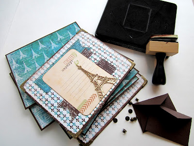 Также я использовала чипборд, клей UHU Creativ, клеевые подушечки от Mr.Painter, бронзовые металлические уголки, люверсы, шнуры из натуральной замши, карточки от "Скрапологии"и металлическую ручку. Для данного проекта отлично подойдет нож от Marianne Design "Эйфелева башня", он сейчас есть в наличии в магазине по отличной цене.