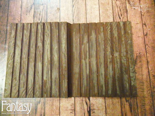 Вырезаем из картона две заготовки размером 16х12,7 см.(основа открытки) и две заготовки 16х11,5 см.(это будущие дощечки для декора.) Так же подготовим бортики 1см. шириной и по длине нашей будущей открытки.