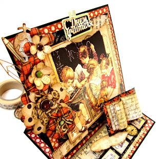 Люблю бумагу и аксессуары этого производителя всей душой и не перестаю удивляться тому, как много можно сделать из одного набора! Считайте сами, у меня был (и еще есть немного) набор Graphic45 ABC Primer Deluxe Collector's Edition. Из него у меня получился школьный альбом-ранец "Пора в школу", открытка необычной формы "Школа-школа, я скучаю". Еще я сделала из него вот этот чудный альбом-madgic-box "Школьная пора". Теперь родилась еще открытка-мольберт. А бумаги хватит еще минимум на 3-4 проекта! Открытки уже раскроены).