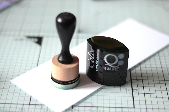 4. Тонирую бумагу теми же чернилами, которые использовала для штампинга. Цвет еле заметен, но очень красиво перекликается с отштампованными листьями. Из тонированной бумажки делаю вырубку-листики.