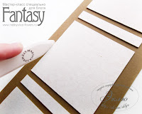 Промазываем клеем середину подложки размером 7,8 см х 7,8 см. Приклеиваем, оставляя одинаковые отступы от края основы. Ждем 2-3 минуты и аккуратно приподнимая края(так, чтобы не сдвинуть подложку), снимаем защитную ленту с двустороннего скотча. Края хорошо приглаживаем. То же самое проделываем со второй подложкой такого же размера.