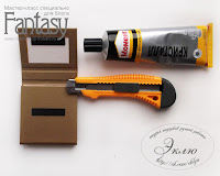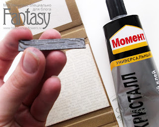 Одну часть промазываем клеем и приклеиваем на деталь размером 8см х 5,5 см.