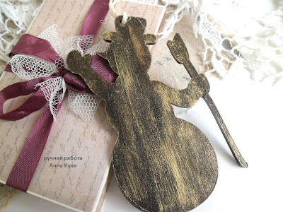 Как и многие из вас, я люблю традиционные цвета этого праздника, но в скрапбукинге возможно все, поэтому и родился черно-фиолетовый с золотом снеговичок.