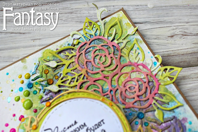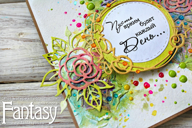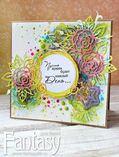 В осенние серые дни мне захотелось достать спреи и воски - и вот получилась очень яркая и позитивная открытка без повода.