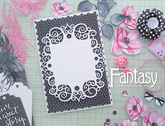 С вами Анна Половко и сегодня хочу поделиться процессом создания стильной многослойной открытки в черно-розовых тонах.
