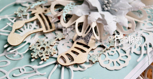 и белым глиттером. Так же не обошлось без цветов ручной работы.