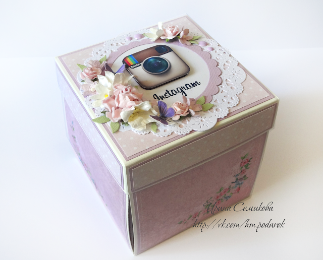 Здравствуйте, с вами я - Ирина Семикова. В продолжение детской темы сегодня хочу показать вам мини-альбом для двух очаровательных малышек и их мамочки (которая, кстати, любит сиреневый цвет и Instagram). Альбомчик у меня необычный, в виде MagicBox - коробочки, раскрывающейся при снятии крышки. Такая форма мини-альбома станет настоящим сюрпризом для ваших родных и близких. Кроме того, это замечательный и практичный подарок - ведь в коробочку можно положить дополнительный сюрприз.