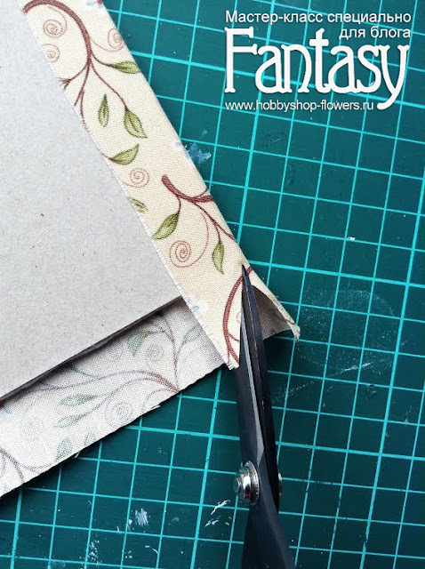 Начинаем приклеивать ткань к визитнице по её длине. Завораааачиваем...