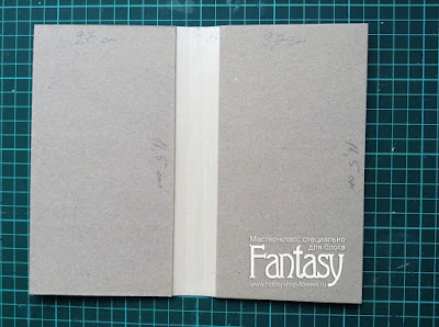Для корешка визитницы: из плотной бумаги вырезаем прямоугольник размером 6*18,5 см. Бигуем его посередине и ещё пару-тройку раз с каждой стороны (для того, чтобы корешок красиво закруглялся в изделии). Откладываем от середины пробигованного корешка по 1,5 см в обе стороны и на этом расстоянии по обе стороны приклеиваем прямоугольники из картона. Ну, вот визитница и готова! Шутка)))) Работы ещё непочатый край!