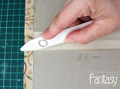 Теперь, склеиваем правую часть, выравнивая скрап-бумагу по периметру.
