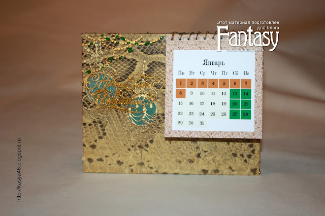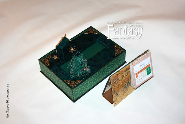Календарь вынимается из декорированного основания, внутри "раскладушки" - поздравление.