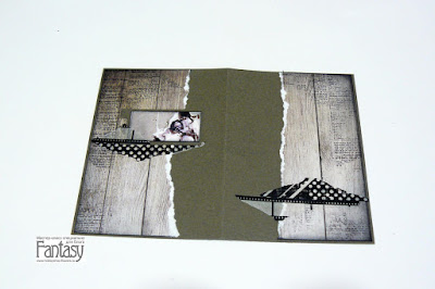 5. Рвём скрап-бумагу. Процесс интересный и важный, стоит потренироваться на «черновичках» и почитать о технике «рваный край». Первая рваная часть для спинки обложки, вторая для «личика».