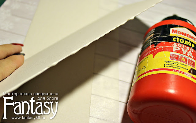 2) Берём 2 полоски 8*21,5. Первую приклеиваем на малярный скотч, а у второй на срез наносим клеем ПВА.