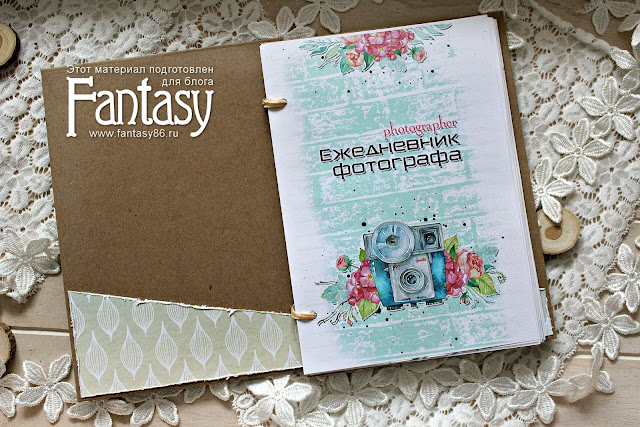 12) Из листа скрап-бумаги вырезаем 2 прямоугольника размером 15,2*20,7 см. Приклеиваем на лицевую сторону.