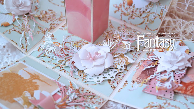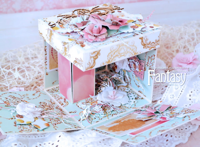 Я вдохновилась "женской стороной"доски, а конкретно цветом и фактурой. У меня получился magic box в бело-золотых и мятно-розовых цветах. Ну и, конечно, не обошла тему подарочков, а именно - обыграла тему подарка в виде лака и денежки )))