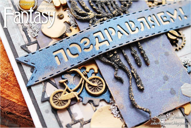 Я сделала мужскую открытку. Вдохновлялась общей палитрой мужских картинок, шестеренками, металлическими элементами.