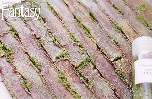 После полного высыхания делаю эмбоссинг зеленой пудрой.