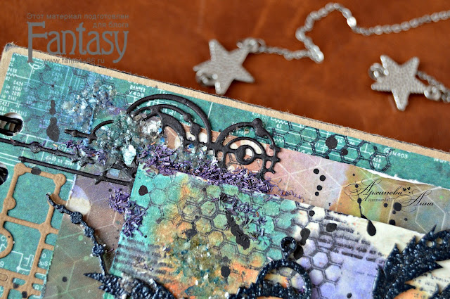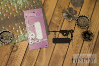 В работе мне помогали замечательные ножи Fantasy: Решетка с кружочками 3, Механическая вывеска, Мандариновые дольки, Фонтан удачи, Движение вперед и чипборд Колесница удачи.
