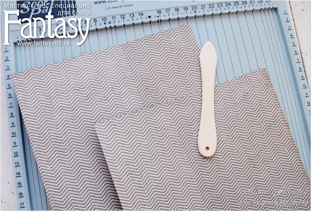Из скрап-бумаги вырезаю две заготовки размером 17,5 на 19,5 см. Делаю биговку, на одной заготовке на расстоянии 11,5 см, на другой - 8 см.