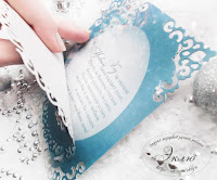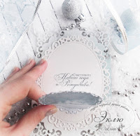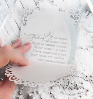 Все открытки выполнены из дизайнерской бумаги цвета слоновой кости. Для создания ажурных овалов мы использовали набор ножей Spellbinders, уголки выполнены при помощи ножей фирмы Nellie'sChoice. Все детали соединены 3D Glossy Accents.