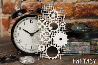 Я использовала негатив от чипборда "Фоновый с шестеренками", который участвовал в экспериментах 3 этапа.