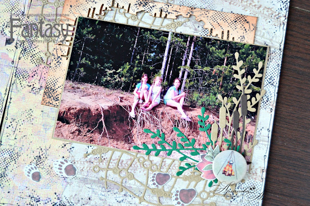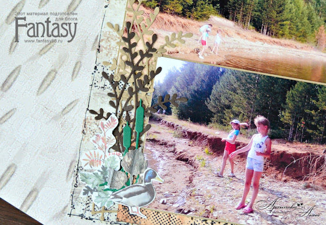 А так же дополнила мой разворот вырубка, сделанная ножами Fantasy: Решетка с кружочками 2, Березовый листок, Капельник 1, камыш из Набор рыбалка 2.