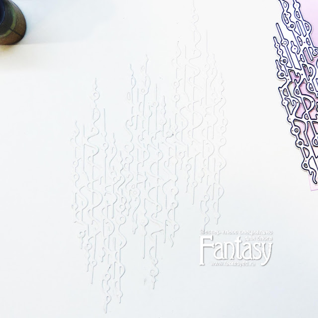 С помощью клея-карандаша я приклеиваю вырубку, сделанную с помощью ножика "Водопад". Узор вырубки позволяет создать вот такую красивую динамичную диагональную композицию)