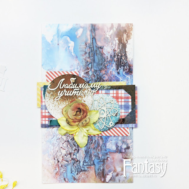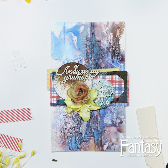 Сегодня хочу поделиться с вами процессом создания вот такой открытки с самодельным фоном для учителя химии-биологии.