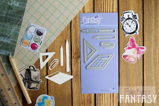 Вместо листьев, обычно обрамляющих цветочные композиции, я использовала ручку и карандашик, а также треугольник - все это Ножи для вырубки Fantasy "Школьный набор 2".