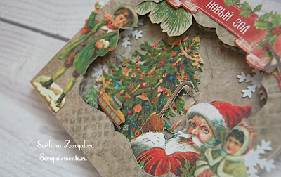 Подвеска объемная, вернее многослойная) Мальчик и девочка на улице, а внутри (дома) их наряженная ёлка. Ещё Санту добавила для атмосферы Рождества.