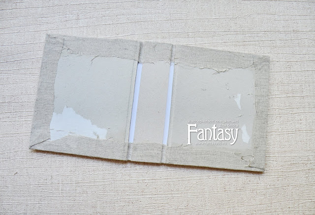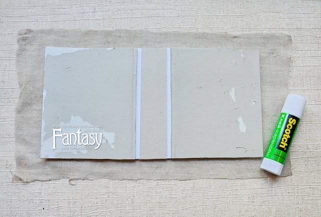 Корешок заклеиваем полоской ткани, хорошо приклеиваем желобки.
