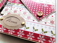 Следующий разворот планировщика мы посвятили покупкам. Сколько же всего надо купить к Новому году?!!!!!!! А сколько ХОЧЕТСЯ!!!!!!! Многие магазины предлагают скидки на новогодний товар, специальные акции, распродажи. Чтобы не "потеряться"во всем этом разнообразии мы сделали кармашки из кальки на левой стороне разворота для дисконтных и скидочных карт. Добавили на страницу варежки и звезды из чипборда, предварительно покрыв их пудрой для эмбоссинга цвета "Красный рубин". А варежки помните как в детском саду?! привязала на двухцветный шнур))))