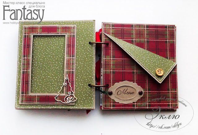 Четвёртый разворот выдержан в традиционных новогодних цветах: красном и зеленом и посвящен праздничному меню) а в рамку на левой странице разворота можно поместить фото с вариантами сервировки стола, оформлением праздничных блюд или свои фото за праздничным столом или же во время приготовления)))))))))