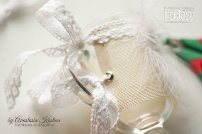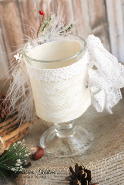 Далее я "одеваю"наш бокал и весь остальной декор клею уже прямо на нем.