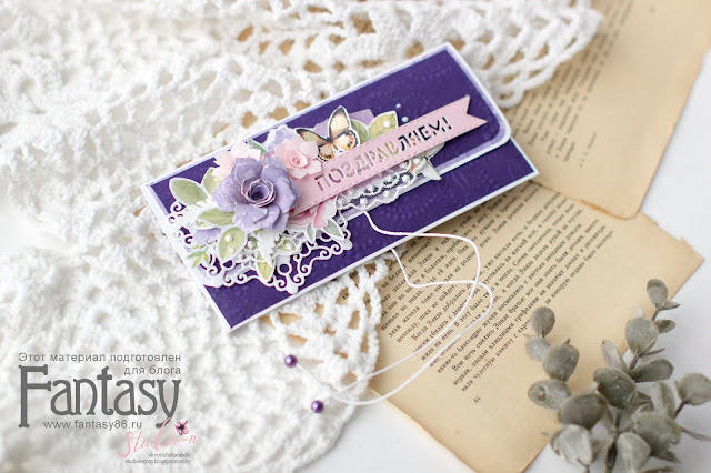 Если вы вдруг захотите сделать подобный конвертик, тогда все, что вам нужно, это парочка чудесных ножиков для вырубки от FANTASY. А именно: листочки "Тропик 3 остролист", "Весенний цветок 2018", флажок "Поздравляем".