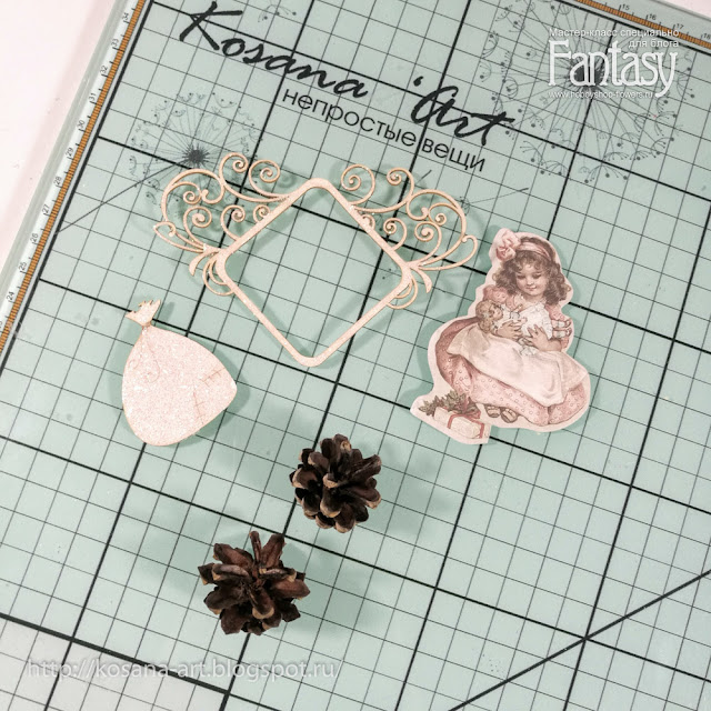 Инструменты: резак, ножницы, клеевой пистолет, линейка, макетный коврик, вырубная машинка и ножи Fantasy: "Сосна + нити 3", "Сосна + нити 1", бордюр "Сердечные узоры".